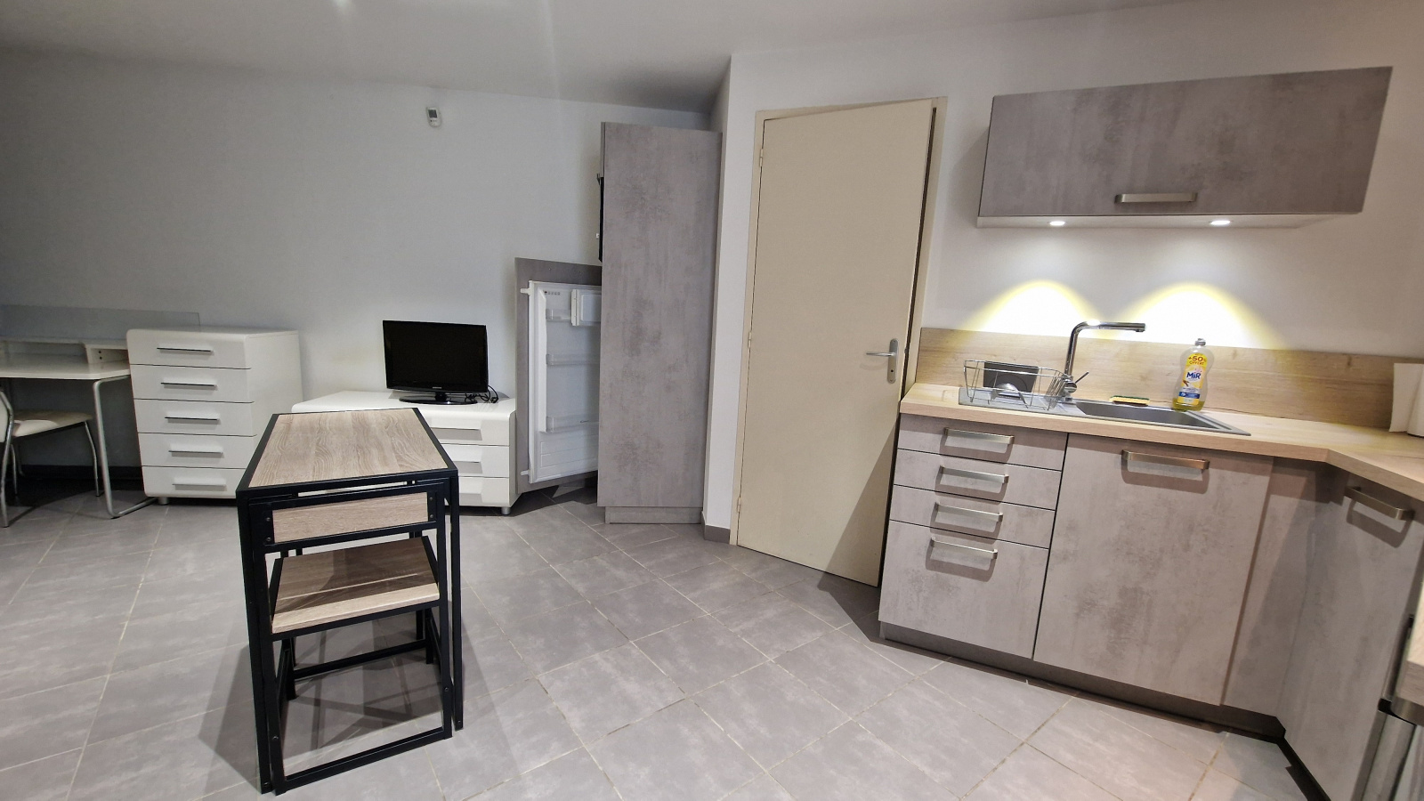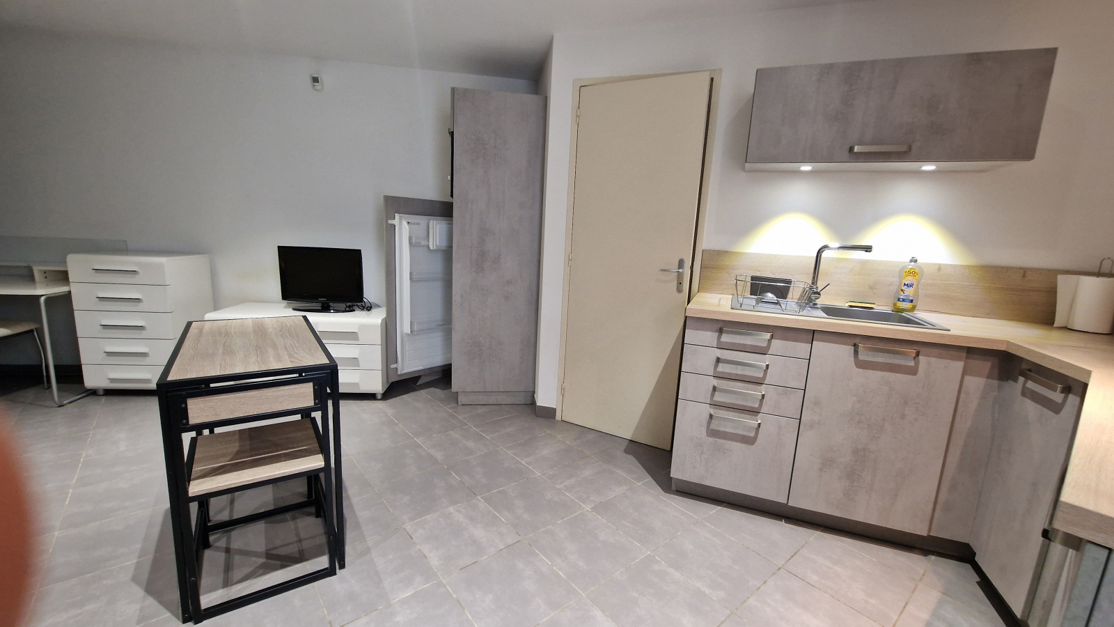 Studio MEUBLE, en fond d'impasse, au calme, comprenant : pièce principale avec coin cuisine équipée, salle d'eau/wc. Belles prestations. Etat impeccable.