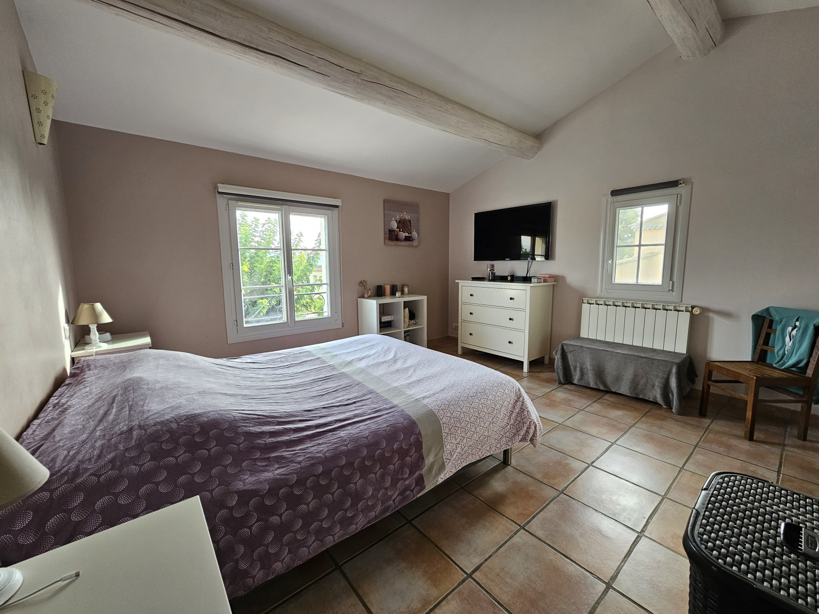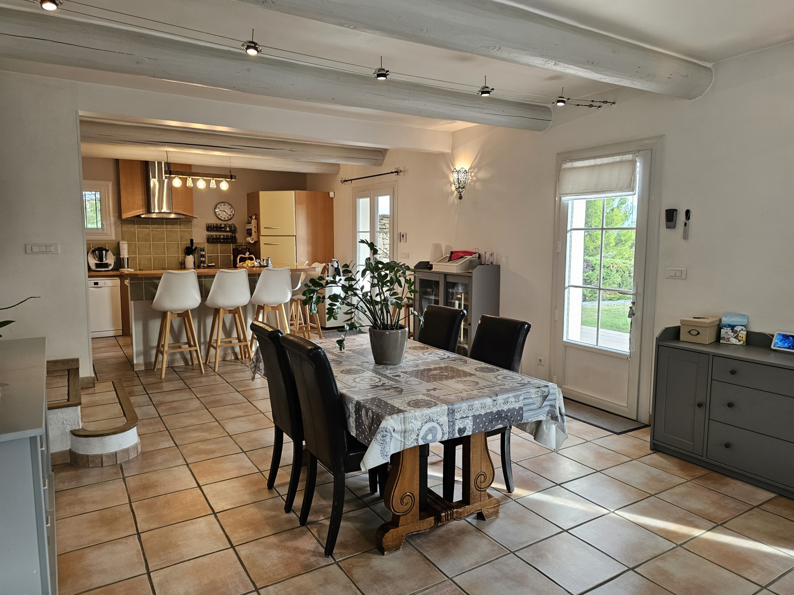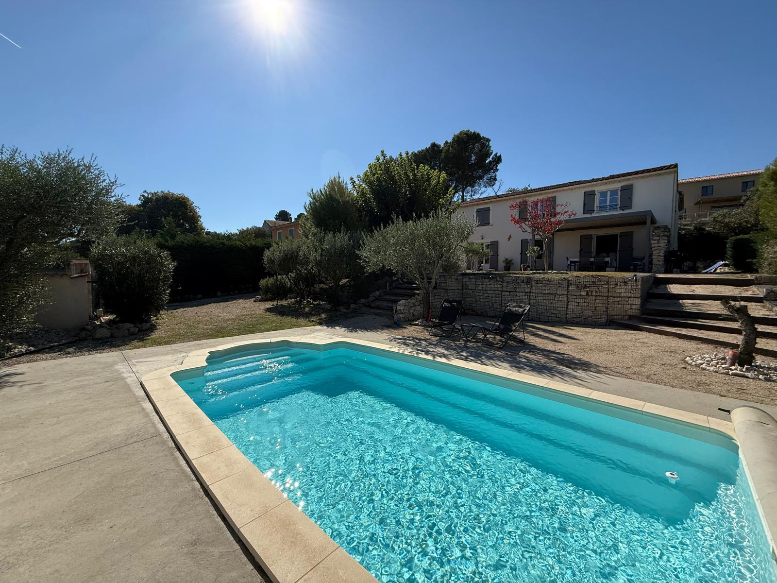 Vue Mont Ventoux et château de ThouzonSituée dans un environnement résidentiel calme et recherché, à proximité immédiate du centre-ville et des commodités, cette villa en R+1 développe environ 187 m² habitables, sur une parcelle de 1 150 m² environ, avec piscine, grand garage double.