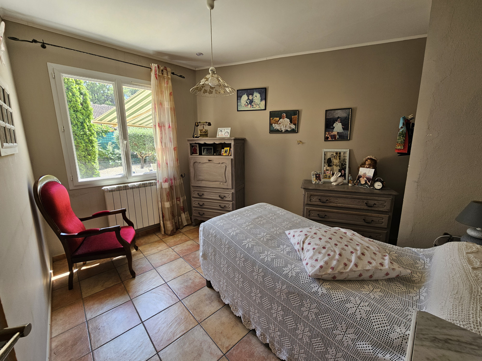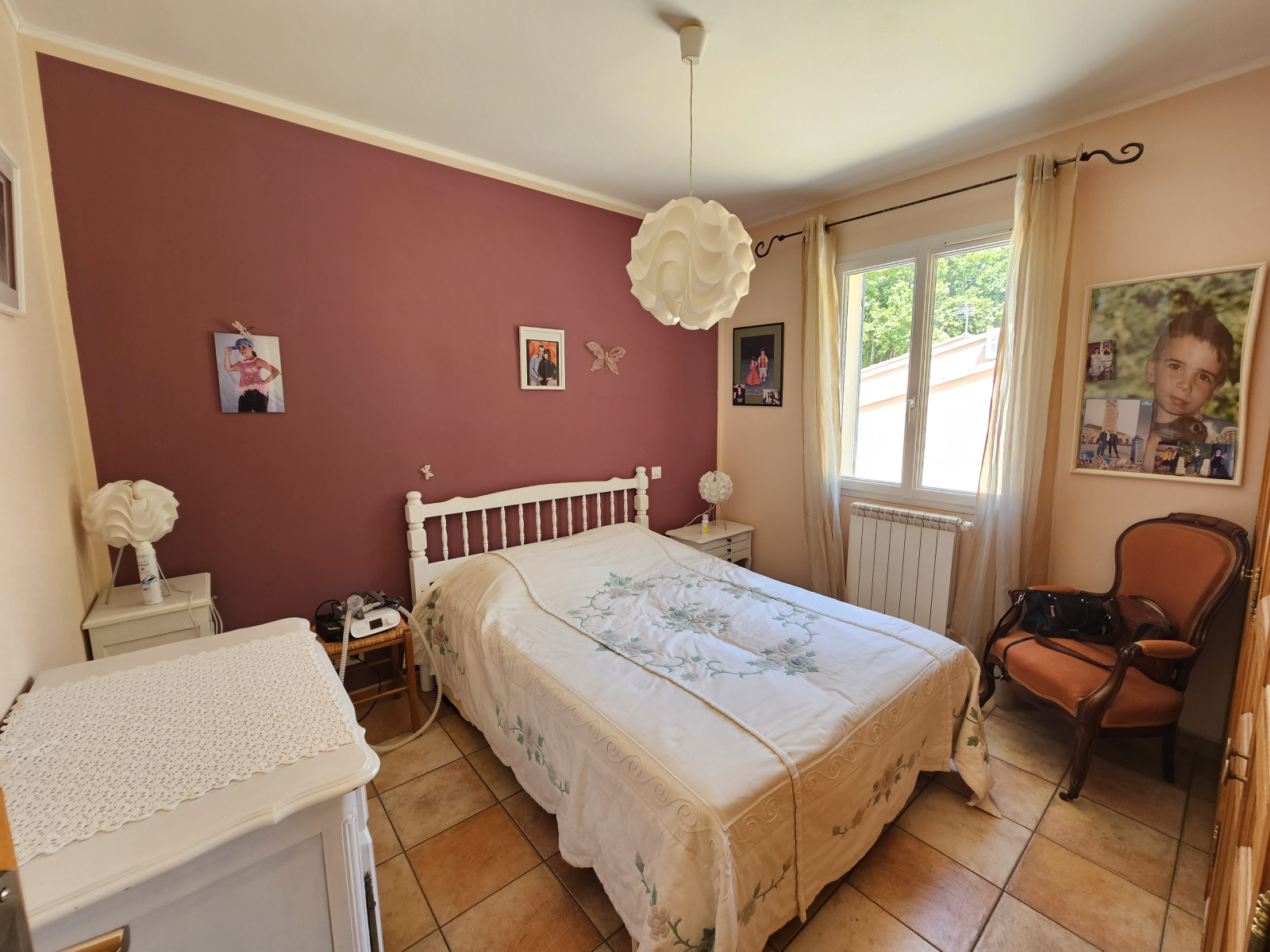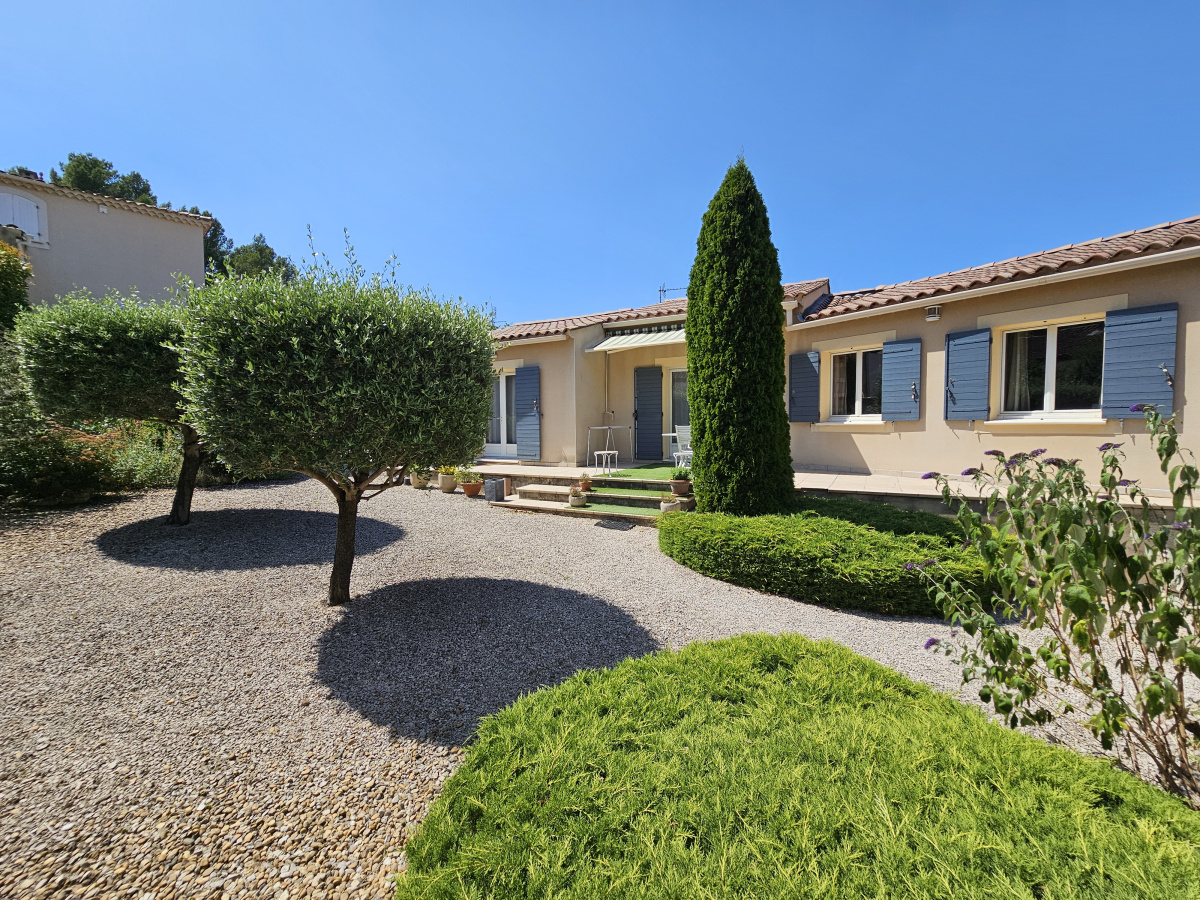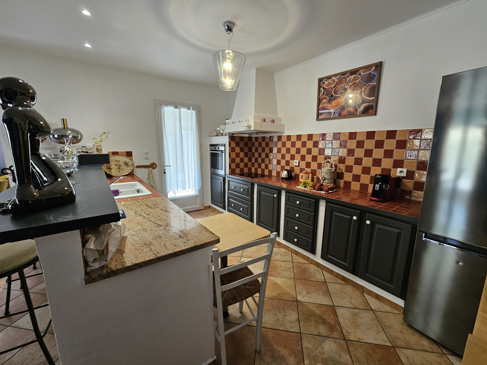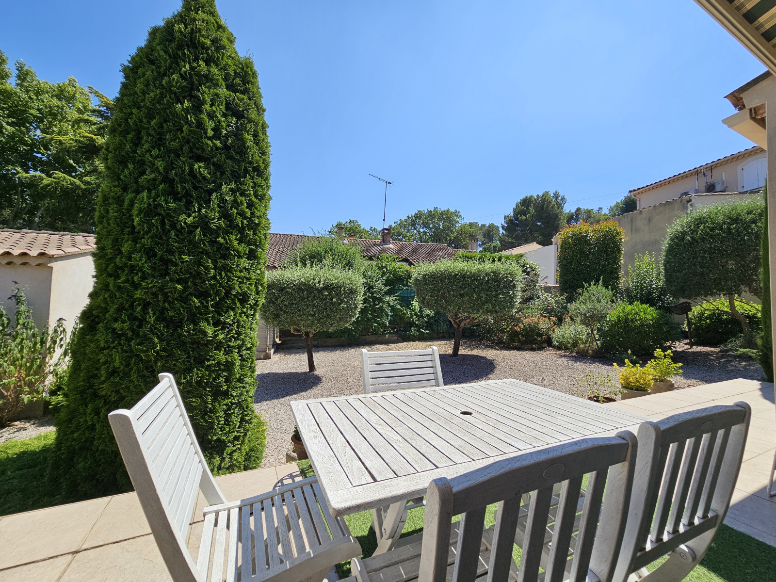 À l’extérieur, la parcelle de 745 m² est joliment arborée, avec de beaux oliviers, une terrasse ombragée par store, et un jardin bien entretenu.