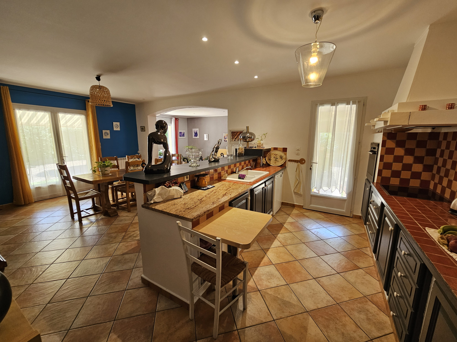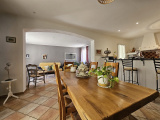 Elle se compose d’un salon lumineux, d’une salle à manger conviviale donnant sur une cuisine semi-ouverte. L’ensemble forme un espace de vie traversant, agréable au quotidien.