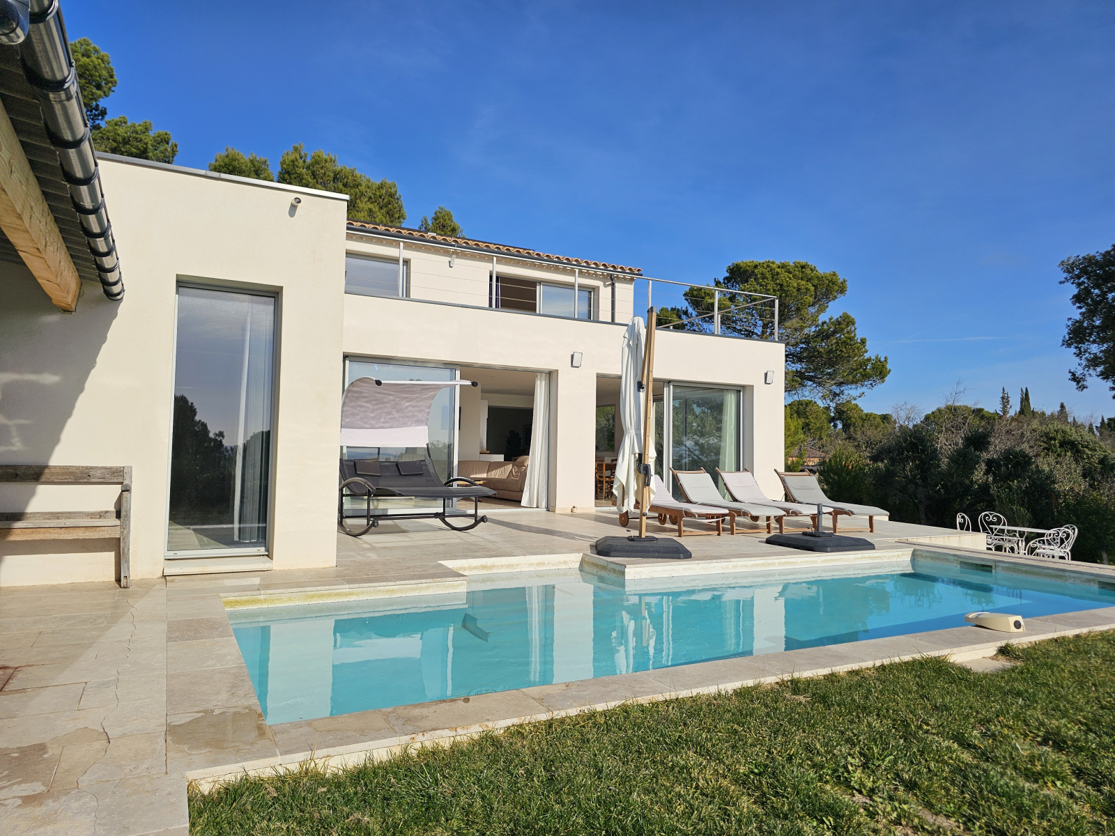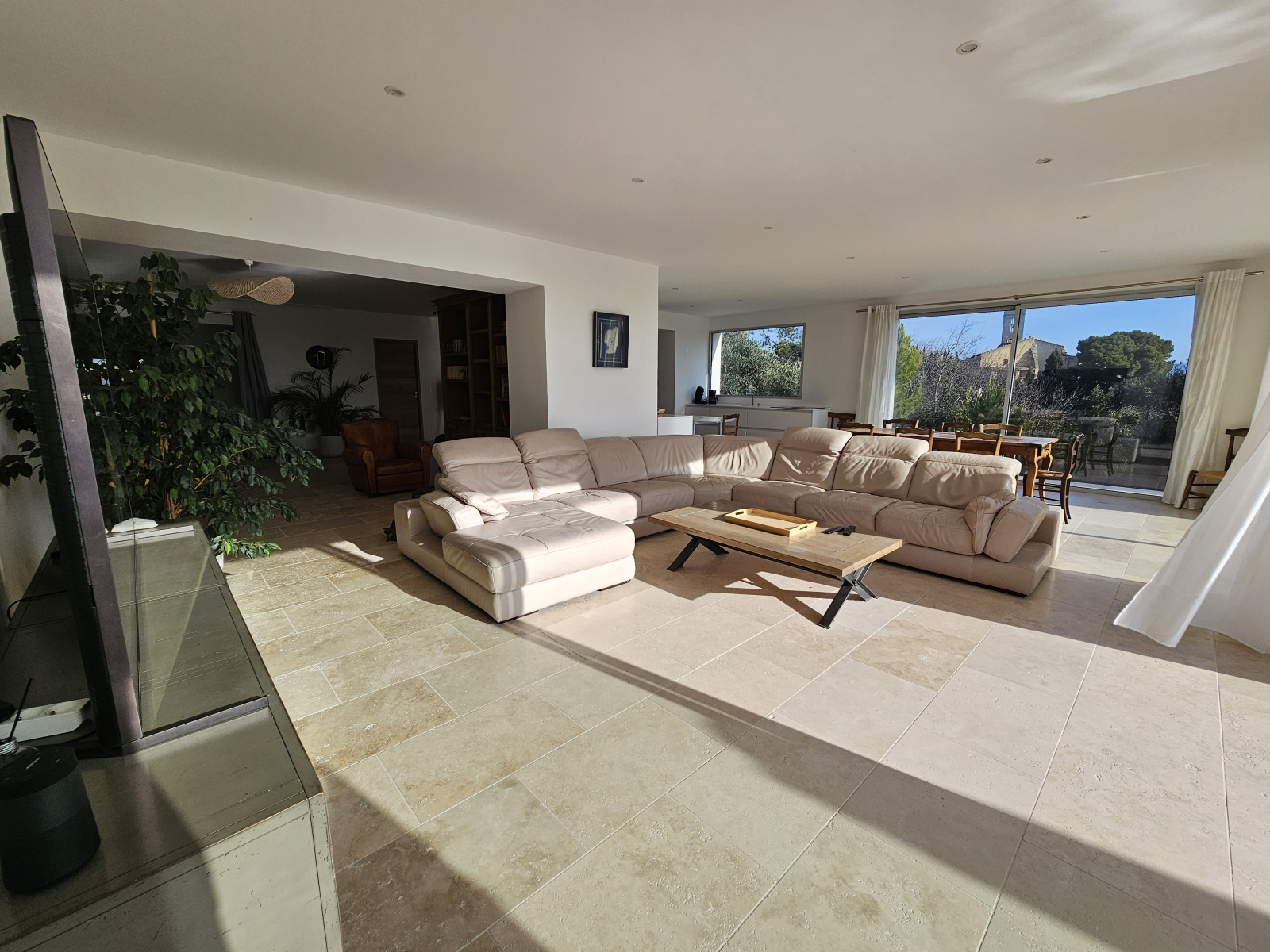 À proximité immédiate du centre-ville, cette maison contemporaine entièrement rénovée développe environ 304 m² habitables, sur un terrain arboré de 1 738 m², traversé par une élégante allée d’oliviers.