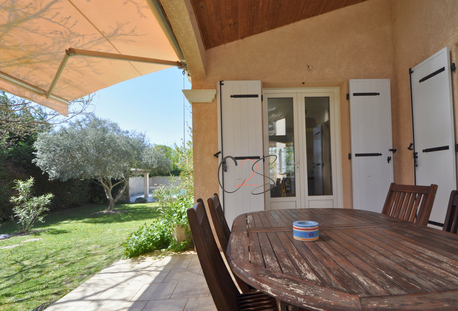 L’extérieur, particulièrement soigné, dévoile un cadre de vie des plus agréables avec une piscine 9 x 4, plusieurs espaces de détente, un jardin paysager agrémenté d’oliviers et de lauriers, un terrain de pétanque, un abri de jardin ainsi qu’un local piscine. Plusieurs terrasses viennent compléter l’ensemble et permettent de profiter pleinement des extérieurs, aussi bien pour les repas en famille que pour les douces soirées d’été au bord de la piscine.